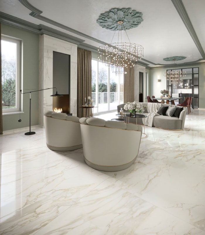 El encanto y la elegancia de la blancura del mármol italiano reviven en las superficies cerámicas de Majestic Pure Selection. La tecnología de impresión digital de altísima resolución de 300 dpi hace que las superficies de Majestic Pure Selection sean estéticamente incomparables, tanto en la versión natural como en la versión pulida a espejo, en la que el lustre y la profundidad del material se realzan con un fino efecto ultrabrillante.